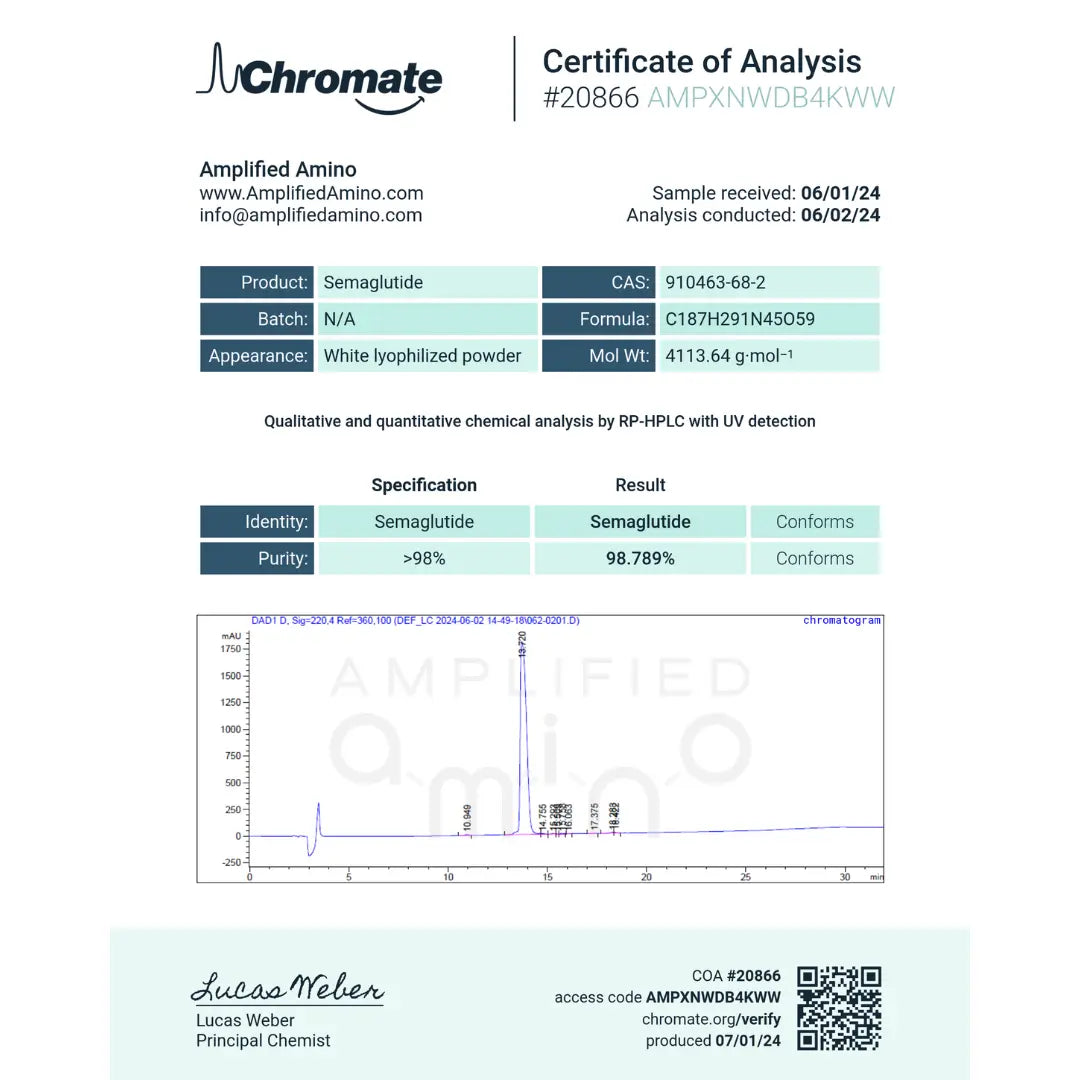 Every batch of our research chemicals and peptides undergoes third-party testing for identity and purity.